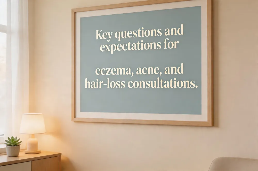 Questions to ask dermatologist about eczema – Inquire about the typical triggers that worsen your eczema (e.g., certain fabrics, soaps, foods, or climate) and how to avoid them. Ask which fragrance‑free moisturizers, cleansers, or laundry products are best for your skin type and whether prescription‑strength barrier‑repair creams are warranted. Discuss the role of stress and lifestyle changes, signs of infection, safe exercise and sweating practices, and a long‑term prevention plan with scheduled follow‑ups.