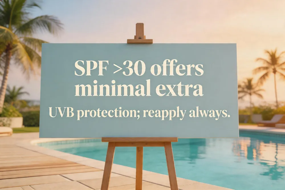 Myth 2: “Higher SPF means proportionally more protection.” Fact: SPF 30 blocks ~97 % of UVB, SPF 50 ~98 %, SPF 100 ~99 %; benefit diminishes beyond SPF 30.