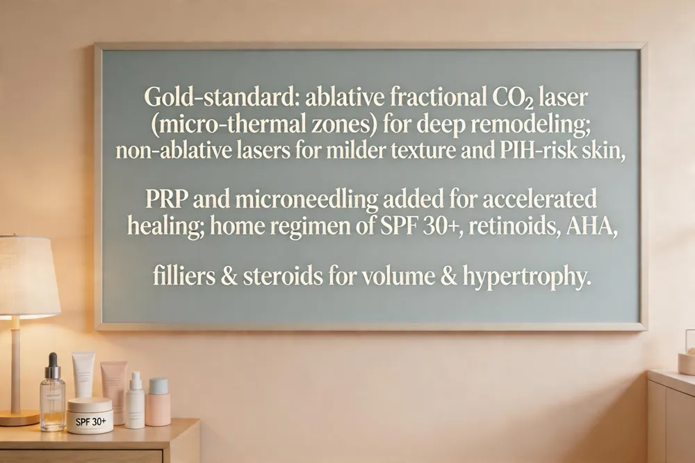 For most patients the gold‑standard is fractional laser resurfacing , especially ablative CO₂ systems (e.g., Lumenis UltraPulse) that create micro‑thermal zones, stimulate deep collagen remodeling, and lift boxcar, rolling and ice‑pick scars.