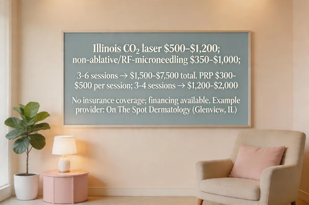 When planning acne‑scar revision, the two most common procedural expenses are laser resurfacing and platelet‑rich plasma (PRP). In Illinois, a typical ablative fractional CO₂ laser session ranges from $500 to $1,200, while non‑ablative or RF‑microneedling treatments fall between $350 and $1,000. Most clinicians recommend a series of 3‑6 sessions spaced 4‑6 weeks apart, so total out‑of‑pocket costs can reach $1,500 to $7,500. PRP adds roughly $300‑$500 per session; a standard protocol of 3‑4 injectable spaced 4‑6 weeks apart adds $1,200 to $2,000. Because these procedures are classified as cosmetic, insurance rarely covers them, though many offices offer financing plans or bundled pricing to ease the burden.