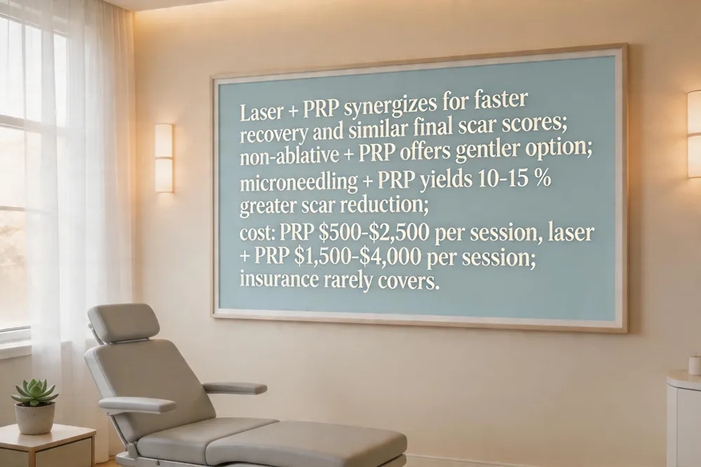 Synergy of laser and PRP has become a cornerstone of modern acne‑scar revision. Fractional CO₂ laser creates micro‑thermal zones that stimulate deep collagen remodeling; when PRP is added, the growth‑factor‑rich plasma accelerates healing, reduces post‑laser erythema and edema, and shortens downtime, though final scar scores are similar to laser alone. For patients seeking minimal recovery, non‑ablative lasers (e.g., 1550 nmEr:glass) combined with PRP offer a gentler alternative with comparable texture improvement. Microneedling plus PRP consistently outperforms microneedling alone, delivering 10‑15 % greater scar‑reduction and higher satisfaction.