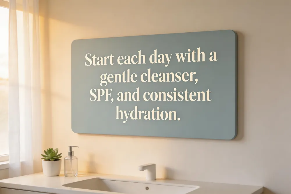 Beginners: Stick to three core steps—cleanse, moisturize, sunscreen—using fragrance‑free, non‑medicated products. In the evening, add a simple antioxidant serum (e.g., niacinamide) before a richer night cream. Consistency is more important than complexity.