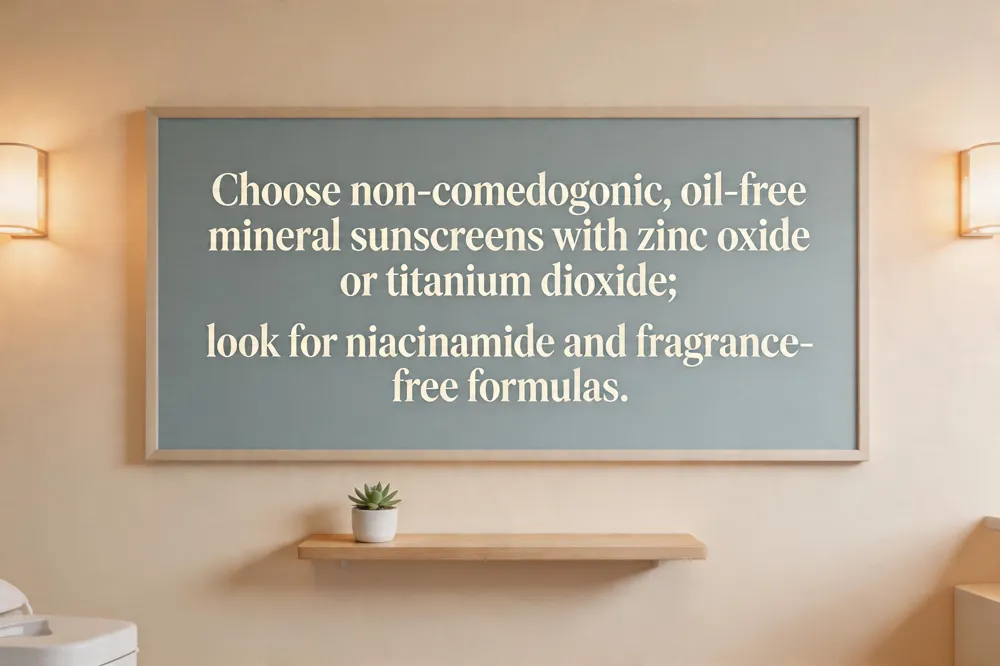 How to choose sunscreen for breakout‑prone skin (dermatologist guidance) When selecting a sunscreen for breakout‑prone skin, prioritize formulas labeled non‑comedogenic and oil‑free to avoid clogging pores. Choose a SPF 30 or higher product that is designed for the face, preferably with mineral filters (zinc oxide or titanium dioxide) or lightweight chemical filters that won’t leave a heavy residue. Look for added ingredients such as niacinamide, zinc oxide, squalane, or ceramides, which help regulate oil, reduce inflammation, and strengthen the skin barrier. Avoid sunscreens containing heavy occlusive agents (e.g., mineral oil, coconut oil, beeswax) or added fragrance, as these can trigger irritation and breakouts. Finally, apply and reapply daily, and cleanse gently each evening to remove any residue and keep pores clear.