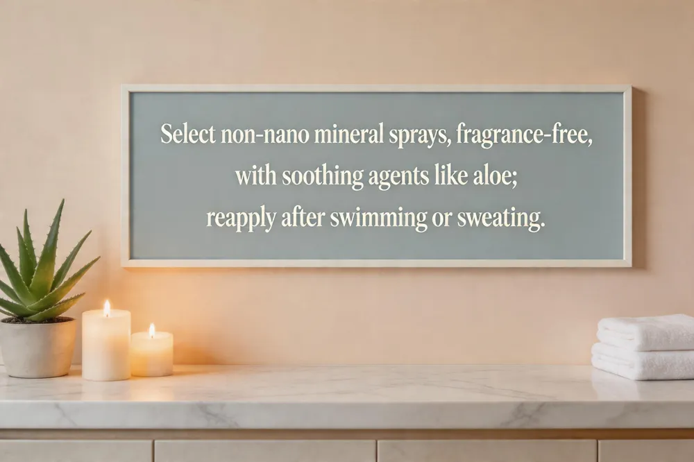 For highly reactive skin, spray‑on and mist sunscreens that use non‑nano mineral particles—primarily zinc oxide and titanium dioxide—provide a physical barrier that stays on the surface and minimizes irritation. Formulations that are fragrance‑free, paraben‑free, and hypoallergenic further reduce the risk of contact dermatitis, while added soothing agents such as aloe vera, niacinamide, or hyaluronic acid help calm redness and support the skin barrier. Water‑resistance (40‑ or 80‑minute claims) offers travel‑friendly convenience, allowing re‑application after swimming, sweating, or towel‑drying without compromising protection.