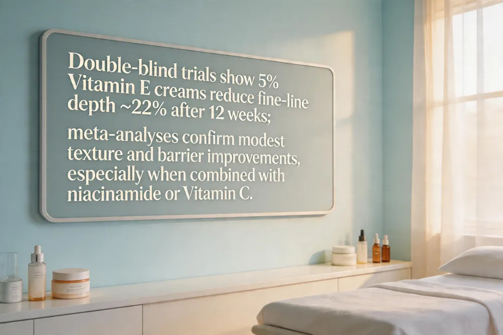 When paired with vitamin C, vitamin E regenerates oxidized vitamin C, boosting overall antioxidant capacity. Clinical data show combined formulations reduce hyperpigmentation more effectively than either ingredient alone.