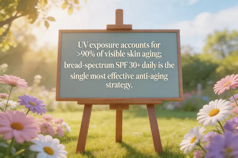 Is 90 % of skin aging caused by the sun? Yes. Scientific reviews and EPA data show that chronic UV exposure drives the majority of premature skin changes, far exceeding intrinsic genetic aging.