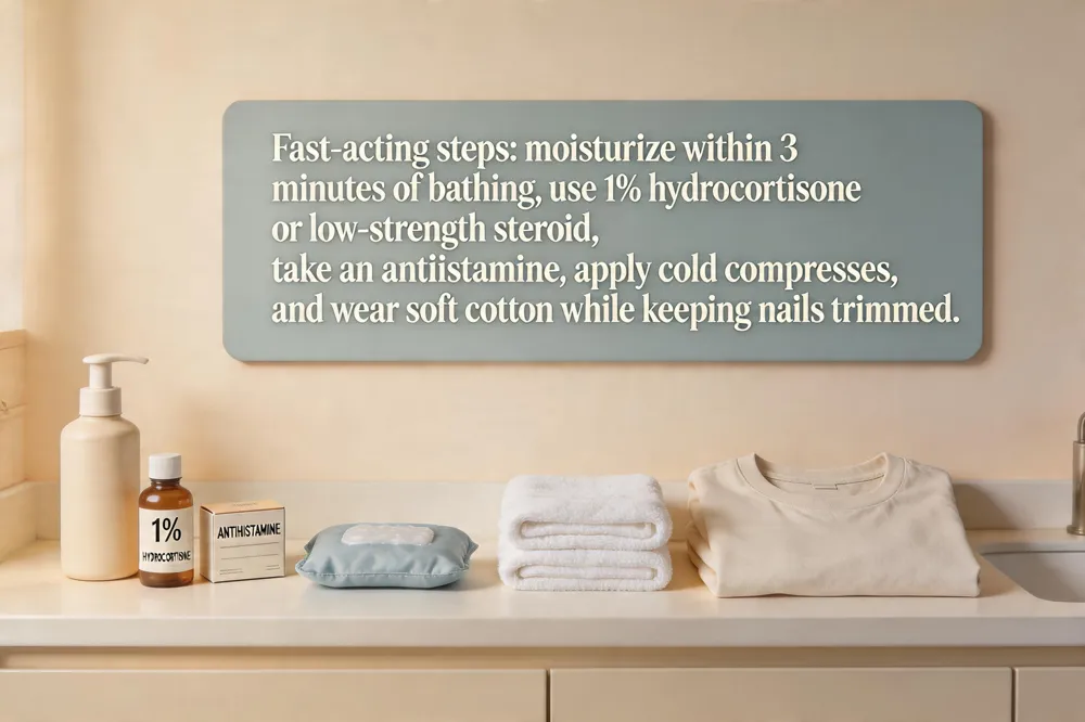- Use an over‑the‑counter 1% hydrocortisone cream or a prescribed low‑strength topical steroid twice daily for immediate itch relief.
