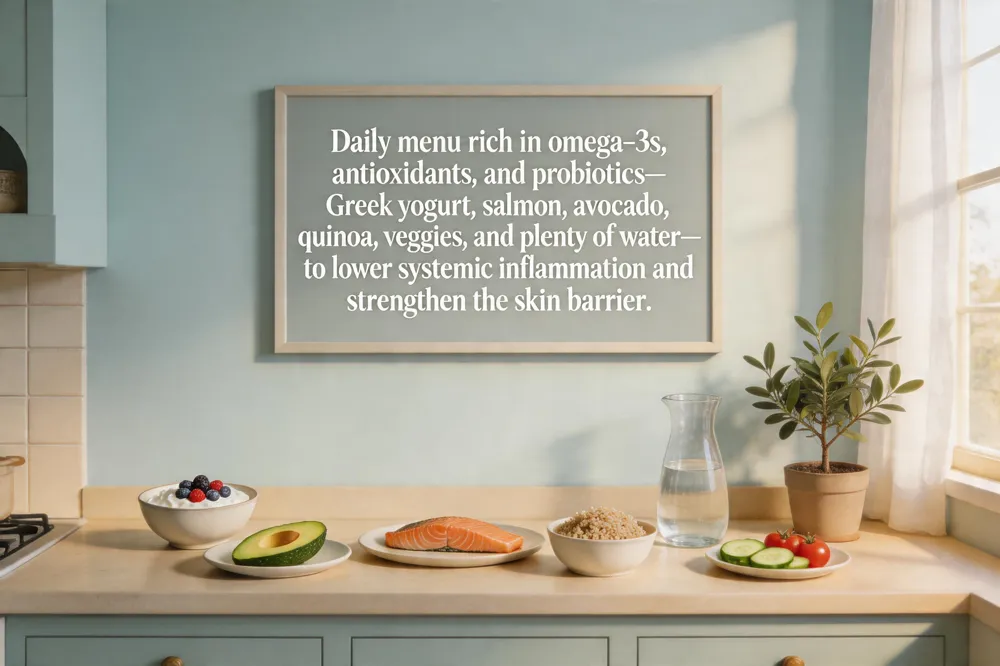 An anti‑inflammatory eating plan helps calm the type‑2 cytokine storm that drives atopic dermatitis. A practical daily schedule looks like: