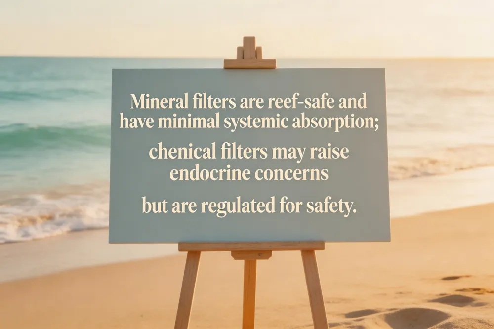 When choosing a sunscreen for sensitive skin, three issues often arise: hormonal health, reef safety, and regulatory oversight. The American Academy of Dermatology advises at least SPF 30 broad‑spectrum protection; mineral filters (zinc oxide, titanium dioxide) sit on the skin’s surface and are less likely to be absorbed, mitigating endocrine concerns. Current human studies have not shown a clinically significant impact of sunscreen on testosterone levels; while laboratory work notes endocrine activity for some chemical filters (e.g., oxybenzone), topical exposure is far below harmful thresholds and FDA‑approved products are deemed safe. Reef‑safe formulations avoid oxybenzone and octinoxate, protecting coral reefs. The FDA requires strict safety and efficacy testing, and the Skin Cancer Foundation’s Seal of Recommendation signals compliance with these standards.
