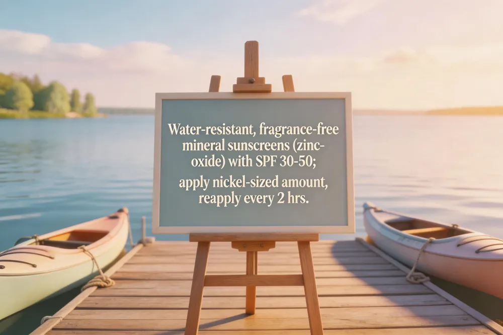 Start with a mineral sunscreen that relies on zinc oxide or titanium dioxide, because these particles sit on the surface and rarely trigger irritation. Choose a fragrance‑free, dye‑free formula that is also labeled non‑comedogenic to keep pores clear. Pick an SPF of at least 30 for everyday use; if you will be outdoors for extended periods, opt for SPF 50 or higher and look for a water‑resistant claim of 40 or 80 minutes. Apply a thin, even layer after your moisturizer, allowing it to absorb for 10‑15 minutes before makeup. Reapply every two hours, and immediately after swimming, sweating, or towel‑drying, to maintain protection effectively.