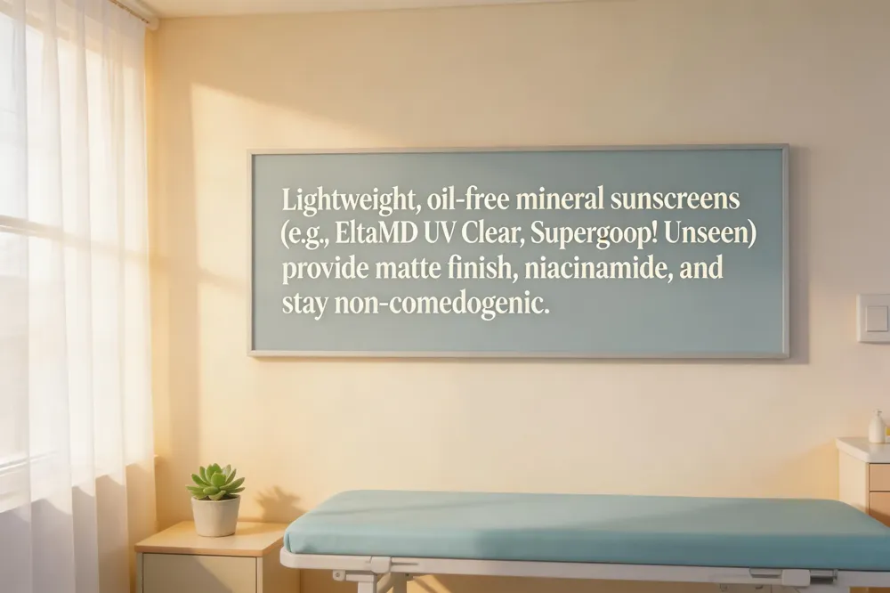 How to choose: Prioritize mineral filters (non‑nano zinc oxide/titanium dioxide) for their low irritancy, look for “non‑comedogenic” and “oil‑free” labeling, and select a matte or semi‑matte texture—gel, fluid, or water‑based. Avoid heavy emollients, petrolatum, and scented additives that can trigger breakouts or redness.
