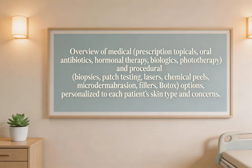 These evidence‑based options are personalized to each patient’s skin type, condition severity, and aesthetic goals, ensuring optimal health and appearance.