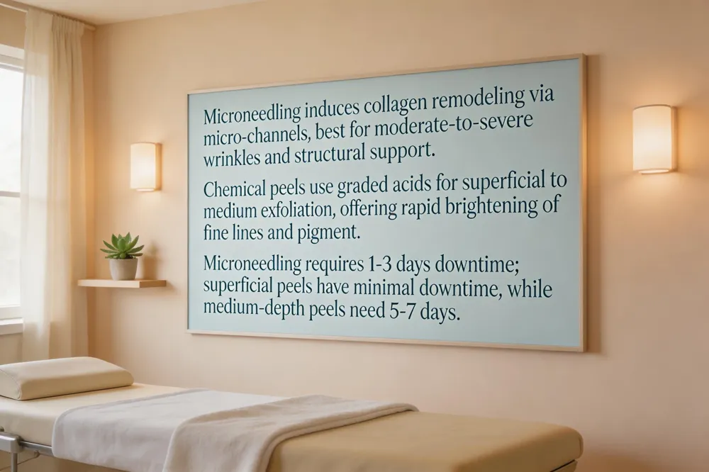 Both microneedling and chemical peels are non‑invasive options that can improve wrinkles and hyperpigmentation, but they work through different mechanisms.