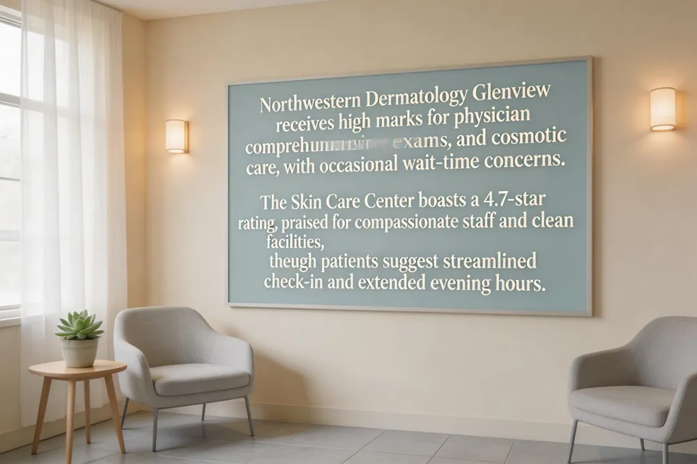The Skin Care Center’s Glenview office holds a 4.7‑star rating. Reviewers highlight compassionate care, a team, and a clean environment. Patients appreciate handling of cosmetic concerns—from acne to microneedling and Botox—and the Compass Road location. Suggested improvements involve reducing paperwork at check‑in and expanding evening hours.