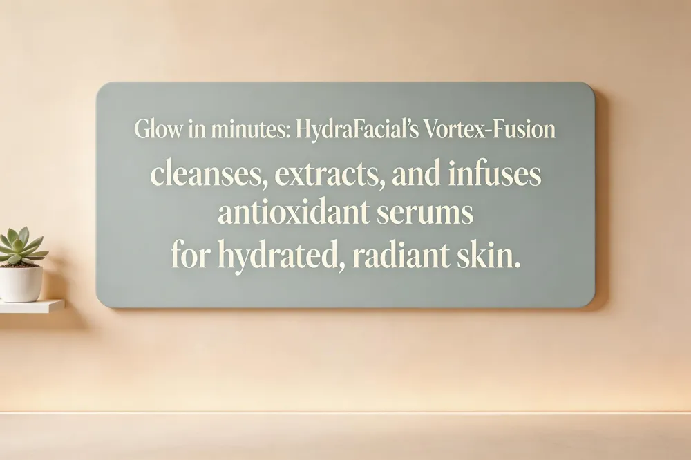 HydraFacial uses a patented three‑step Vortex‑Fusion technology that first cleanses and gently exfoliates with salicylic and glycolic acids, then extracts impurities, and finally fuses antioxidant‑rich serums deep into the skin. The treatment can be customized with boosters such as Britenol (alpha‑arbutin + vitamin C) for hyper‑pigmentation or Dermabuilder (peptide blend) to stimulate collagen production, allowing clinicians to target specific concerns while delivering intense hydration. Because the process is non‑invasive and painless, it is safe for all skin types—including sensitive, rosacea‑prone, and acne‑prone skin—making it an ideal quick‑glow option before events or for regular maintenance.