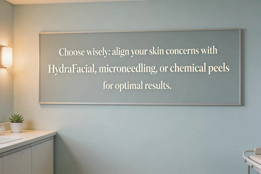 Choosing the right skin‑rejuvenation modality starts with your primary goal. HydraFacial excels at surface concerns—dryness, mild congestion, fine lines, and uneven tone—and delivers instant radiance with zero downtime, making it ideal for regular maintenance or pre‑event refreshers. Microneedling creates controlled micro‑injuries that trigger collagen and elastin production, so it is best for deeper acne‑scar remodeling, pronounced texture irregularities, and long‑term anti‑aging benefits. Chemical peels (superficial, medium, or deep) chemically remove the outer skin layers, stimulating cellular turnover and collagen; they are suited for sun damage, hyperpigmentation, and moderate‑to‑severe scarring when a more aggressive resurfacing is needed.