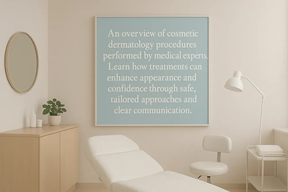 Cosmetic dermatology is a medical specialty focused on improving the appearance of the skin, hair, and nails. Performed by board-certified dermatologists, it addresses concerns like wrinkles, sun spots, scars, and unwanted hair through safe, minimally invasive procedures such as Botox, dermal fillers, laser therapies, and chemical peels. The goal is to achieve natural-looking aesthetic enhancements that boost a patient's confidence and satisfactionKey communication skills in cosmetic dermatology.