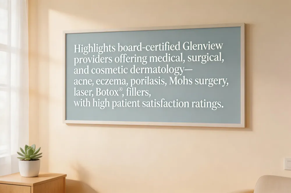 Glenview residents have several full‑service dermatology options that blend medical expertise with cosmetic care. On The Spot Dermatology, located in Glenview, IL, offers board‑certified physicians who treat acne, eczema, psoriasis, rosacea and skin cancer, and also provide advanced aesthetic procedures such as Botox®, dermal fillers, chemical peels, laser resurfacing and IPL photofacials. The Skin Care Center’s Glenview office (2551 Compass Rd., Suite 105) adds Mohs micrographic surgery, patch testing, photodynamic therapy and a full suite of injectables, all delivered by dermatologists like Dr. Mark Allan Berk and Dr. Gina Marie Dillig. Northwestern Medicine’s Glenview Outpatient Center (2701 Patriot Blvd.) extends services to exosome therapy for hair regrowth, comprehensive skin‑cancer screening, and surgical dermatology, with board‑certified clinicians including Dr. Benjamin R Marks. Patient feedback is uniformly positive: The Skin Care Center holds a 4.7‑star rating on Google, while Northwestern Dermatology Glenview enjoys a 4.8‑star average from more than 2,200 reviews, praising knowledgeable staff, personalized treatment plans and a compassionate, patient‑first approach. Together, these practices provide Glenview’s community with accessible, evidence‑based skin health and aesthetic solutions.