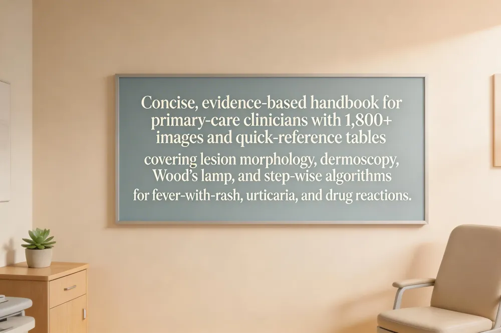 Dermatology Essentials, 2nd Edition (Elsevier, 2022) is a concise, evidence‑based handbook designed for primary‑care clinicians, providing over 1,800 clinical images and quick‑reference tables that streamline bedside diagnosis. The text emphasizes a systematic approach to basic dermatology principles—inspection of lesion morphology, distribution, and pattern—paired with bedside tools such as dermoscopy and Wood’s lamp to differentiate benign from malignant findings. For patients presenting with fever and rash, the book offers a step‑wise algorithm that narrows the differential by integrating age, exposure history, and characteristic features (e.g., target lesions for erythema multiforme or morbilliform eruptions for drug reactions). Urticaria and acute drug‑induced rashes are addressed with clear flowcharts that guide clinicians through antihistamine selection, identification of potential allergens, and when to pursue patch testing. Throughout, concise tables list common ‑x/Rx options for acne, atopic dermatitis, psoriasis, rosacea, and actinic keratosis, enabling rapid, personalized treatment decisions for patients at On The Spot Dermatology in Glenview, IL.