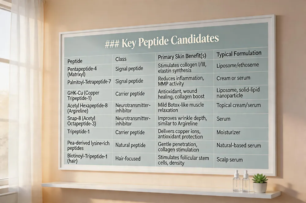 | Peptide | Class | Primary Skin Benefit(s) | Typical Formulation |