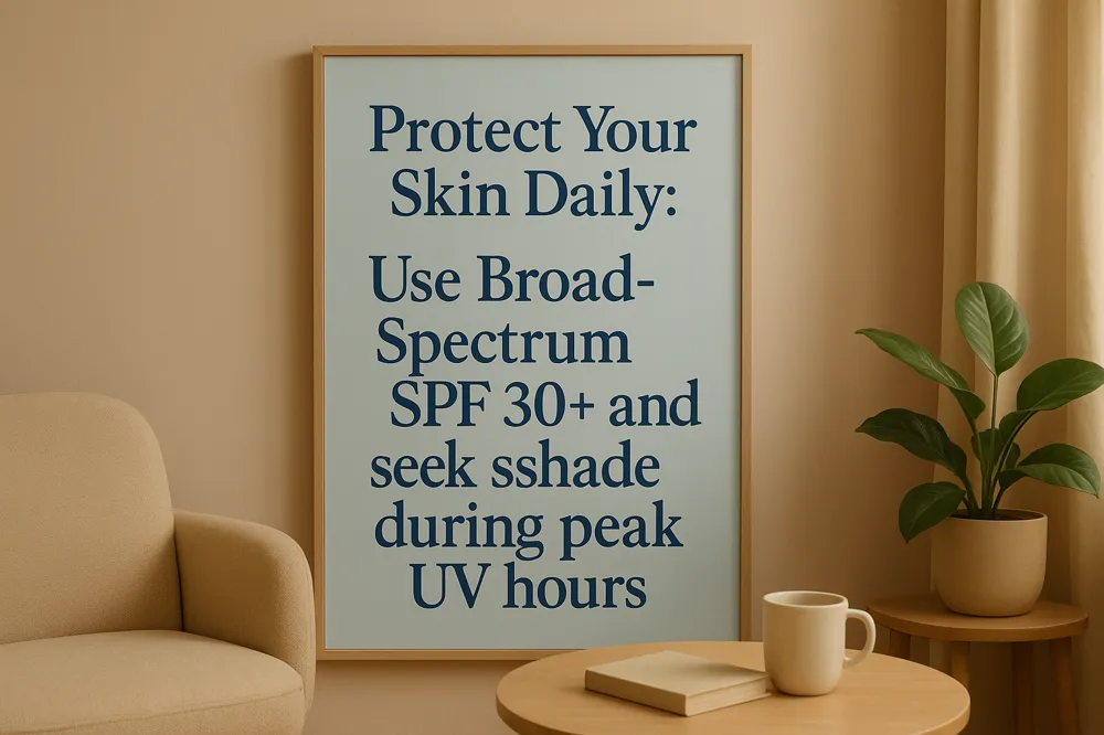 Protect skin daily by wearing sunscreen, seeking shade during peak UV hours, and donning protective clothing. Manage stress through healthy habits like adequate sleep and physical activity to prevent flare-ups of skin conditions such as acne and eczema.
