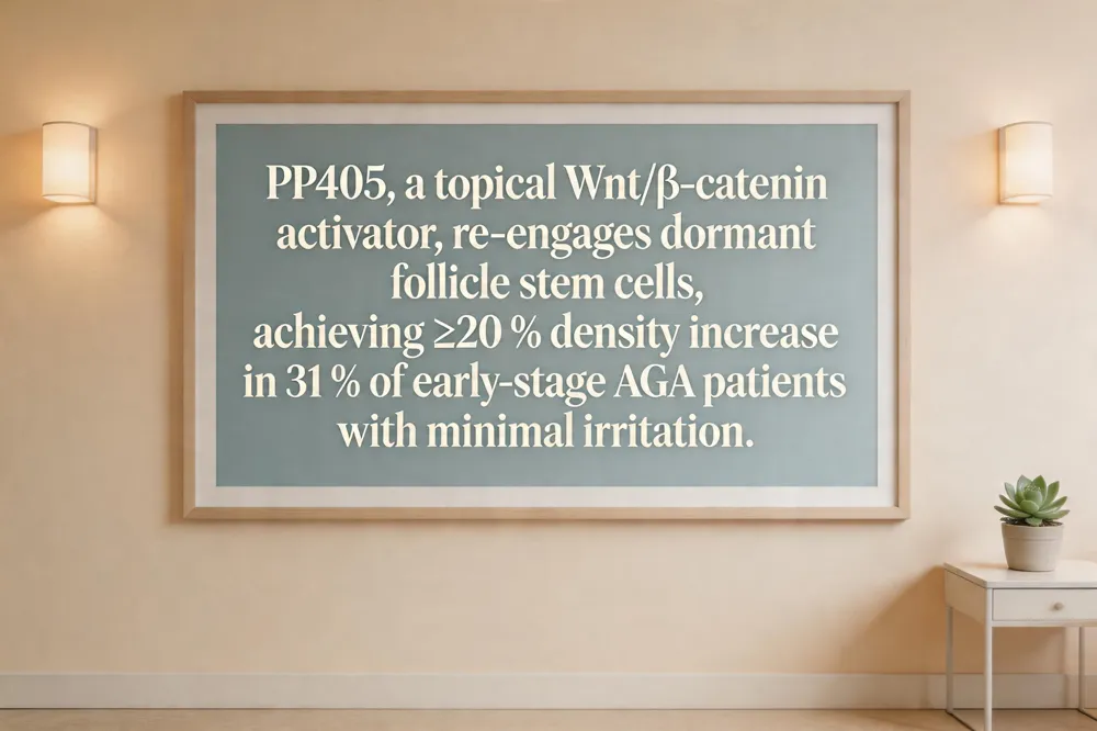 PP405 hair loss treatment PP405 aims to reactivate dormant follicles, offering a non‑systemic alternative to finasteride or minoxidil. Until FDA approval, proven therapies remain the first‑line options, though enrollment in clinical trials may be appropriate for select patients.