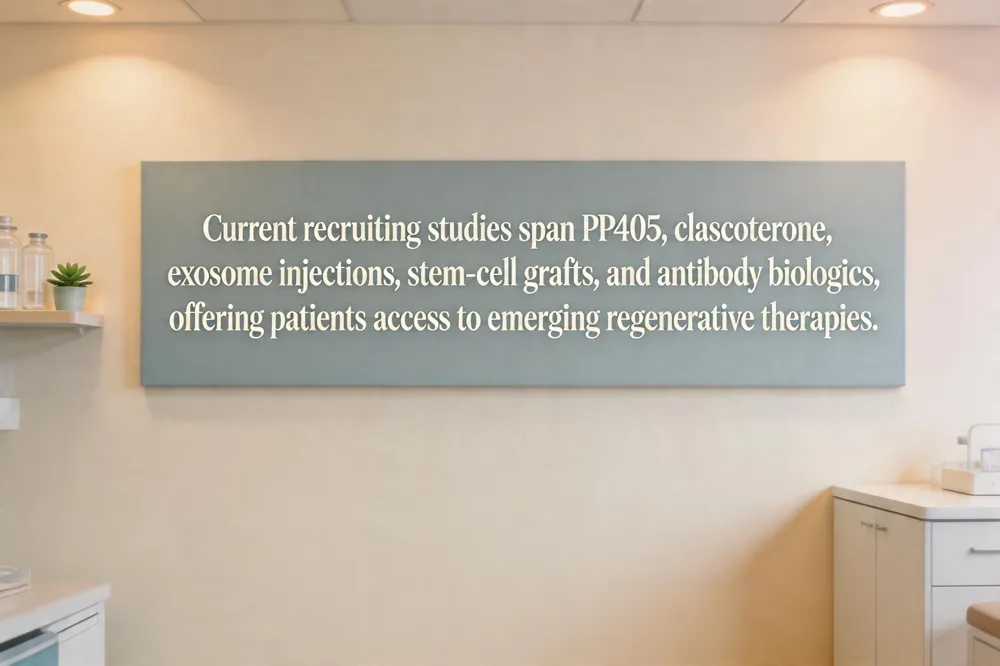 Recent Phase 3 data have reignited optimism for new hair‑loss therapies. Cosmo Pharmaceuticals reported that the topical steroid clascoterone boosted hair density in men with androgenetic alopecia by 168 % to 539 % versus placebo, prompting planned U.S. and European filings. In parallel, Pelage Pharmaceuticals’ PP405, a small‑molecule that reactivates dormant follicle stem cells, showed a >20 % density increase in a Phase 2a trial and is now entering a multinational recruiting study in Melbourne that enrolls adults with stages III‑V AGA to assess safety and tolerability. Emerging modalities expanding beyond traditional drugs: exosome‑based injections aim to deliver regenerative vesicles; stem‑cell‑rich fat grafts provide a local source of regenerative cells; and antibody biologics (e.g., dupilumab) target specific inflammatory pathways implicated in alopecia. Patients eager to join trials should first discuss eligibility with their dermatologist, who can evaluate disease stage, medical history, and concurrent therapies. They can also search ClinicalTrials.gov using keywords such as “androgenetic alopecia 2025/2026” or contact academic centers listed in the study advertisements to learn about enrollment timelines and geographic sites.
