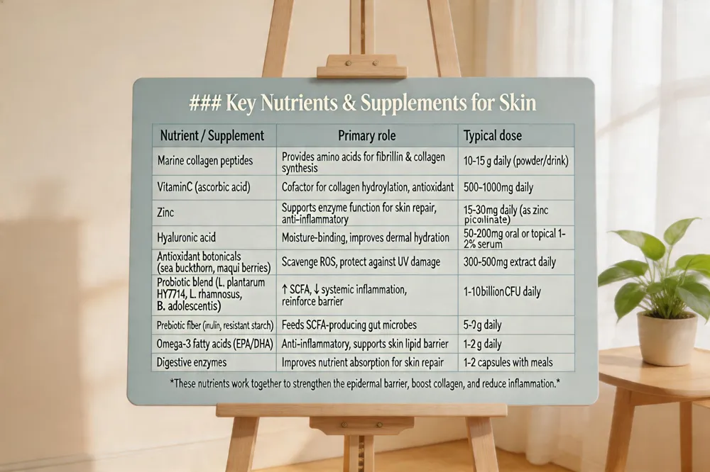 | Digestive enzymes | Improves nutrient absorption for skin repair | 1‑2 capsules with meals |