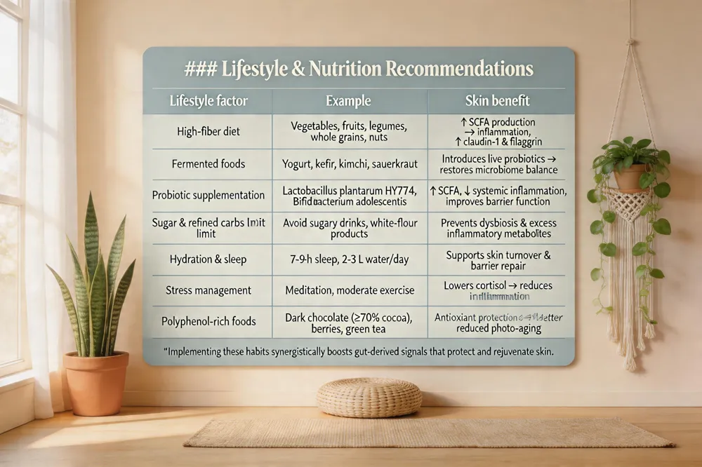 Implementing these habits synergistically boosts gut‑derived signals that protect and rejuvenate skin.