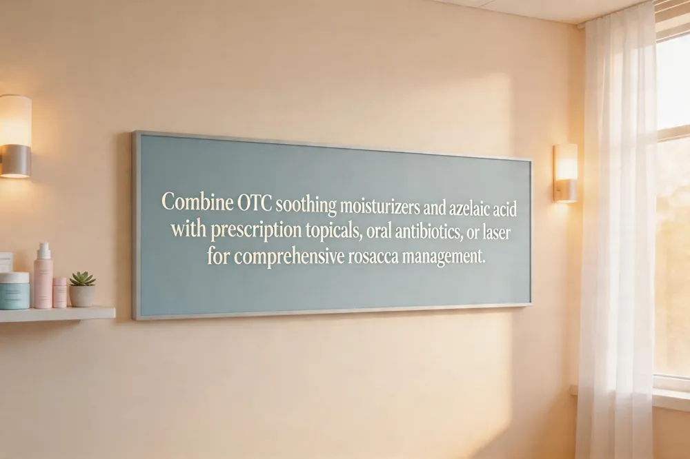 Rosacea treatment over the counter – Fragrance‑free moisturizers with ceramides, hyaluronic acid, niacinamide, and mineral sunscreens (zinc oxide or titanium dioxide) calm irritation. Low‑strength azelaic acid (≈10 %) and sodium sulfacetamide/sulfur blends are available OTC for mild redness and papules. Avoid alcohol‑based toners, harsh exfoliants, and heavy fragrances.