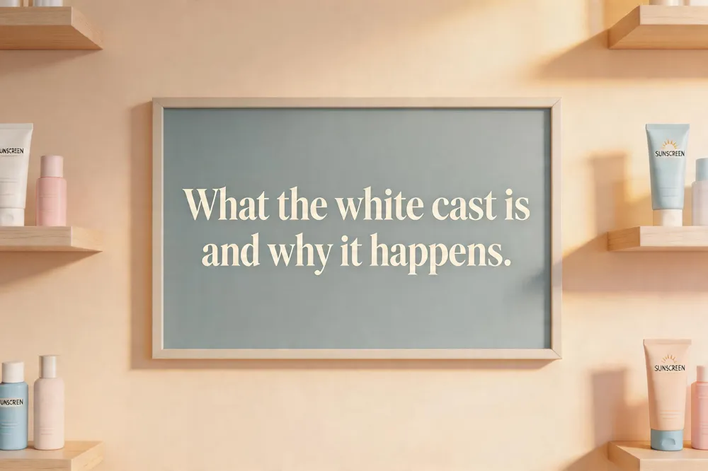Mineral sunscreens rely on zinc oxide and/or titanium dioxide—white inorganic powders that sit on the skin’s surface to physically scatter UV light. Because the particles are naturally opaque, they can leave a visible chalky film, known as a white cast, especially on deeper skin tones or when applied too thickly. Particle size matters: larger particles are more apparent, while micronized or nano‑sized particles blend more seamlessly and reduce opacity. Mineral filters differ from chemical (organic) filters, which absorb UV radiation and are typically invisible on the skin.