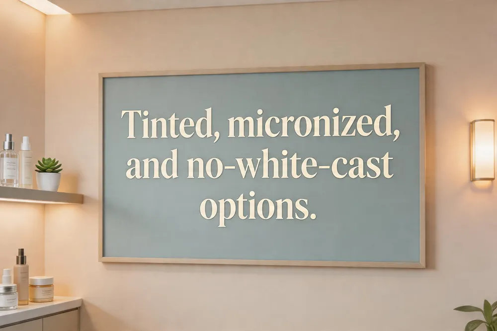 Tinted mineral sunscreens (e.g., Merit Uniform Tinted Mineral SPF 45) add iron‑oxide pigments that neutralize the white hue, while clear‑feel formulas such as Supergoop! Unseen SPF 50, EltaMD UV Sheer SPF 50+, and La Roche‑Posay Anthelios Clear Skin SPF 60 rely on micronized or nano‑sized zinc oxide/titanium dioxide to blend invisibly.